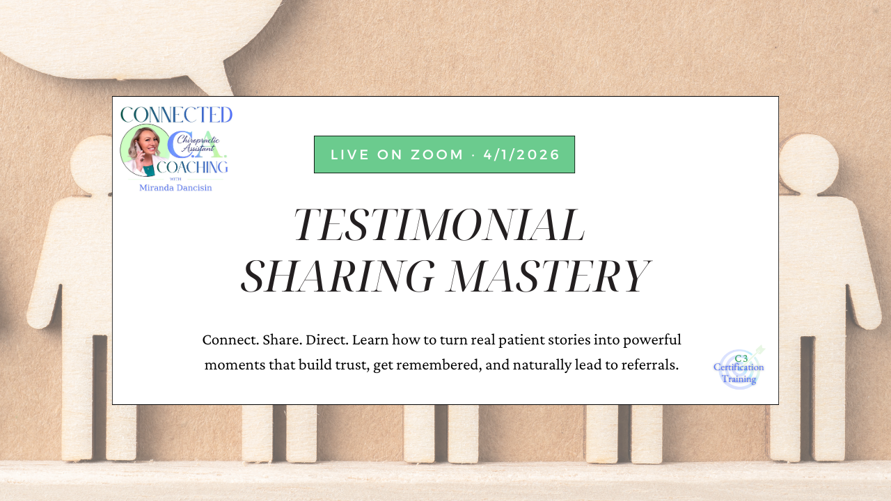 Over the next 3 months, you’ll be guided through focused trainings designed to strengthen your confidence, communication, and leadership as a Chiropractic Assistant.